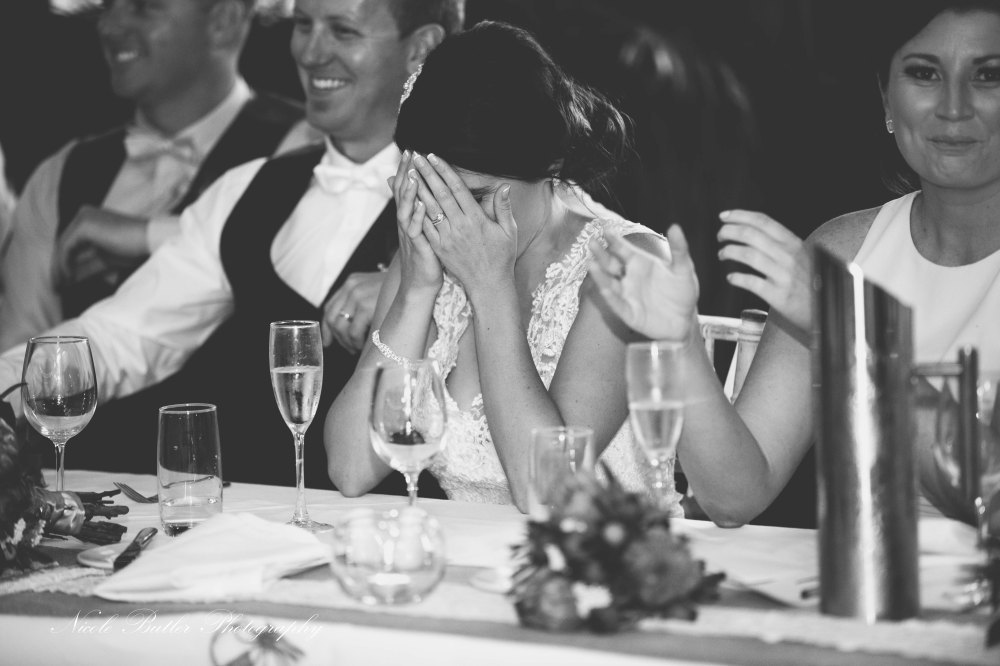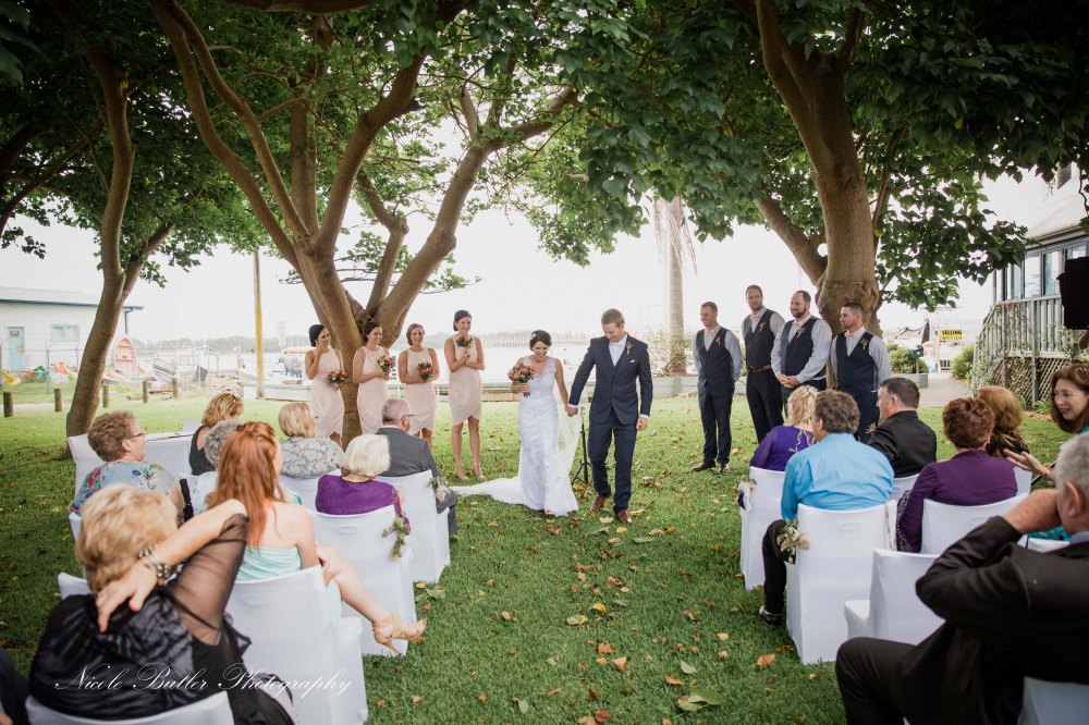 This pair are such a perfect match and compliment eachother so well and it was a pleasure to document their day. 3 Storms came and went throughout the afternoon and we did a few dashes for cover but I couldn’t think of a better bride to take it all in her stride and keep smiling all day. They were lucky enough to snag their ceremony outdoors under the beautiful trees at Milanos on the lake. The smile was beaming on Robs face as Jess walked down the isle. Jess you and the girls looked absolutely stunning and the boys scrubbed up very handsome also. The reception was a beautiful relaxed atmosphere with family and friends with some lovely words throughout the speeches and to top it off a mighty fine bouquet and garter performance. I wish you guys a lifetime of happiness and thanks for letting me be a part of your special day….