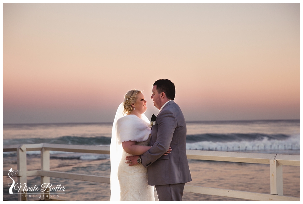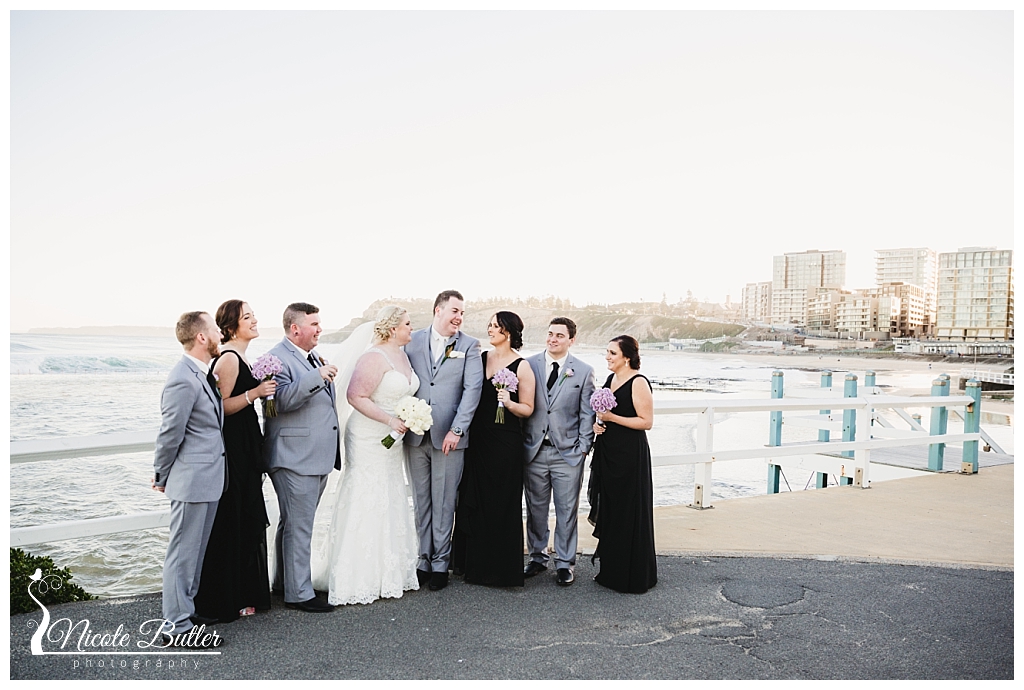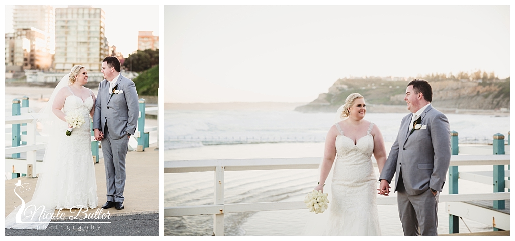 Jess & Sam were married on the 22nd July in Newcastle in a fairy tale inspired wedding. Jess looked gorgeous with the most beautiful veil. It was lovely to capture the giving of thoughtful gifts to family during the getting ready photos which feature throughout this gallery. The ceremony was held at Sacred Heart Cathedral, with a small change of plans once we got to the location photos at Newcastle Baths with the crowds gathered to see the massive king tide. We decided to stay dry on higher ground and we got the most gorgeous colours at dusk. Jess did such a beautiful job with her ideas for decorating the reception. Noahs was decked out in lots of fairy tale goodness. The speeches were beautiful and their guests danced the night away to the talented Matt McLaren. Congrats Jess and Sam, wishing you a lifetime of happiness. Enjoy re-living your day through the story of these images.