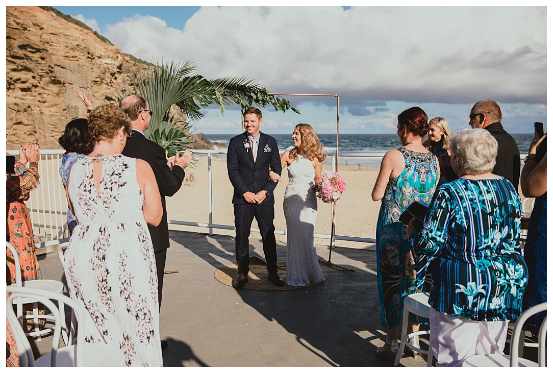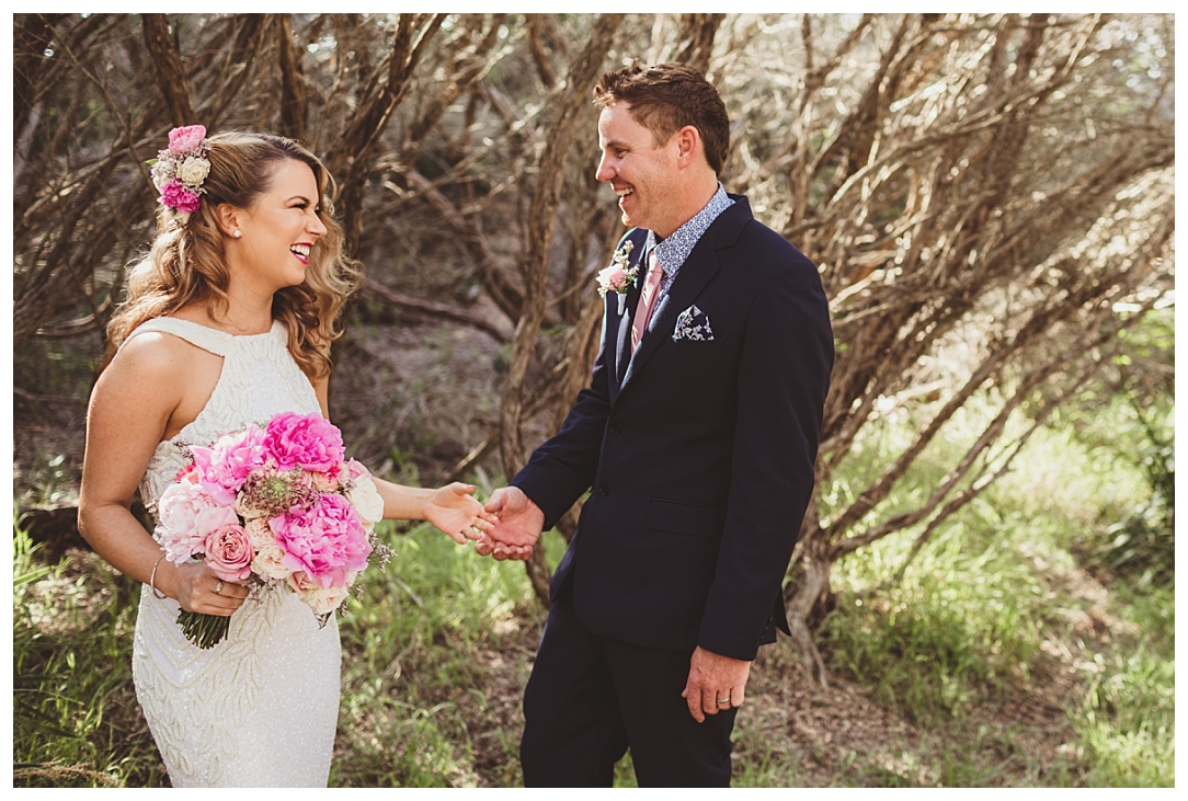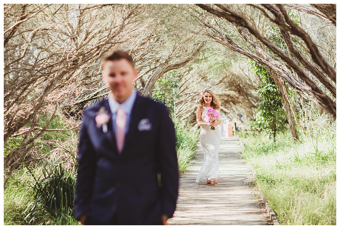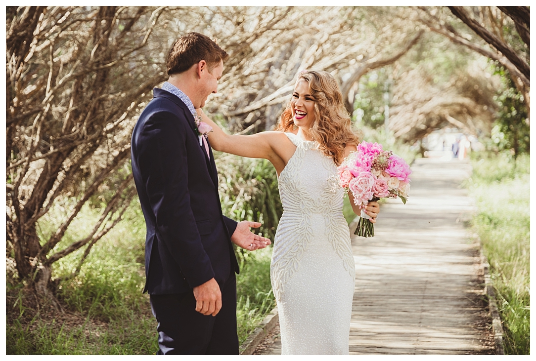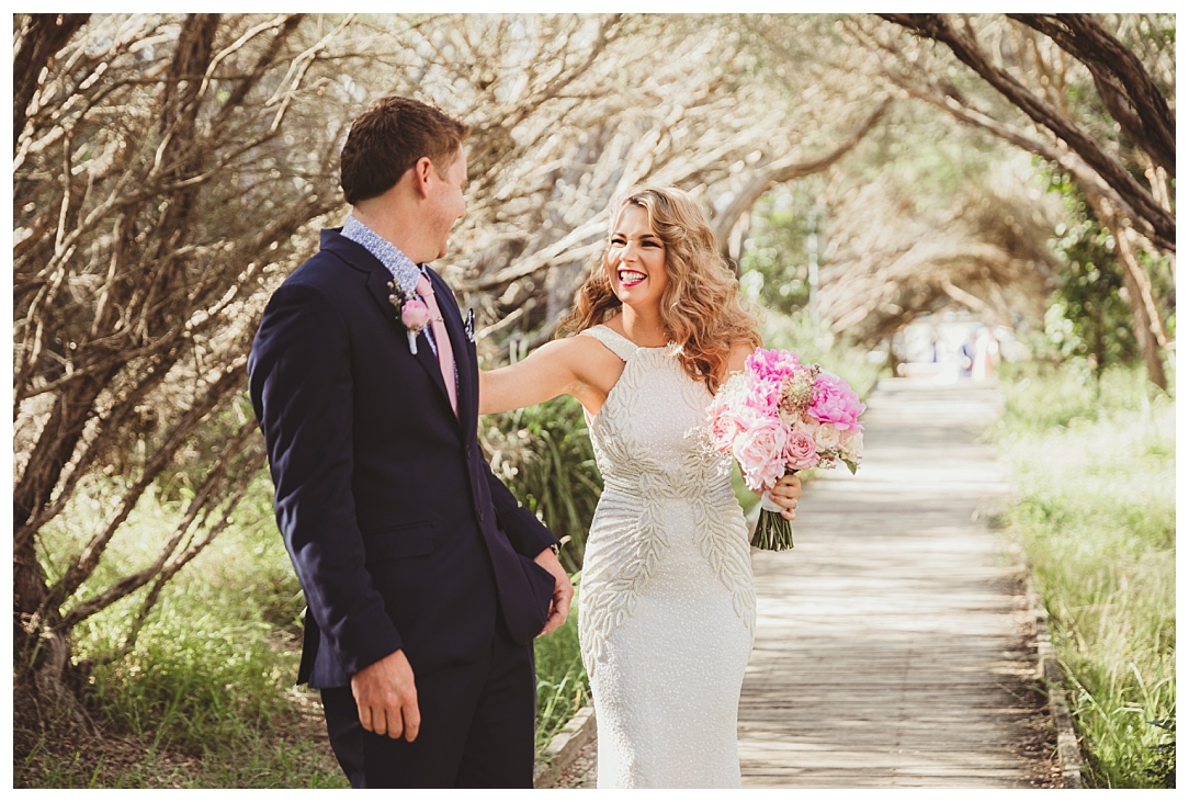 Tahnia & Matt were married on the 17th November at Redhead. These guys did things a little differently. We did a sneaky first look as well as their family photos before the ceremony so all there was left to do was to ‘get hitched’ and PAR-TAY! It was the sweetest first look. I love that Matt in so many of the photos just after the first look is holding Tahnia’s hand and standing back so he could check her out. Tahnia has the best smile that lights up every image and she looked drop dead gorgeous. They celebrated with a super cool bunch of people at Redhead Surf Club which was styled beautifully by Whimsical Fox events. Congratulations Tahnia & Matt, enjoy all of the smiles, love and laughter in the images below!