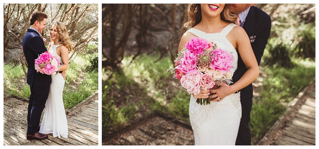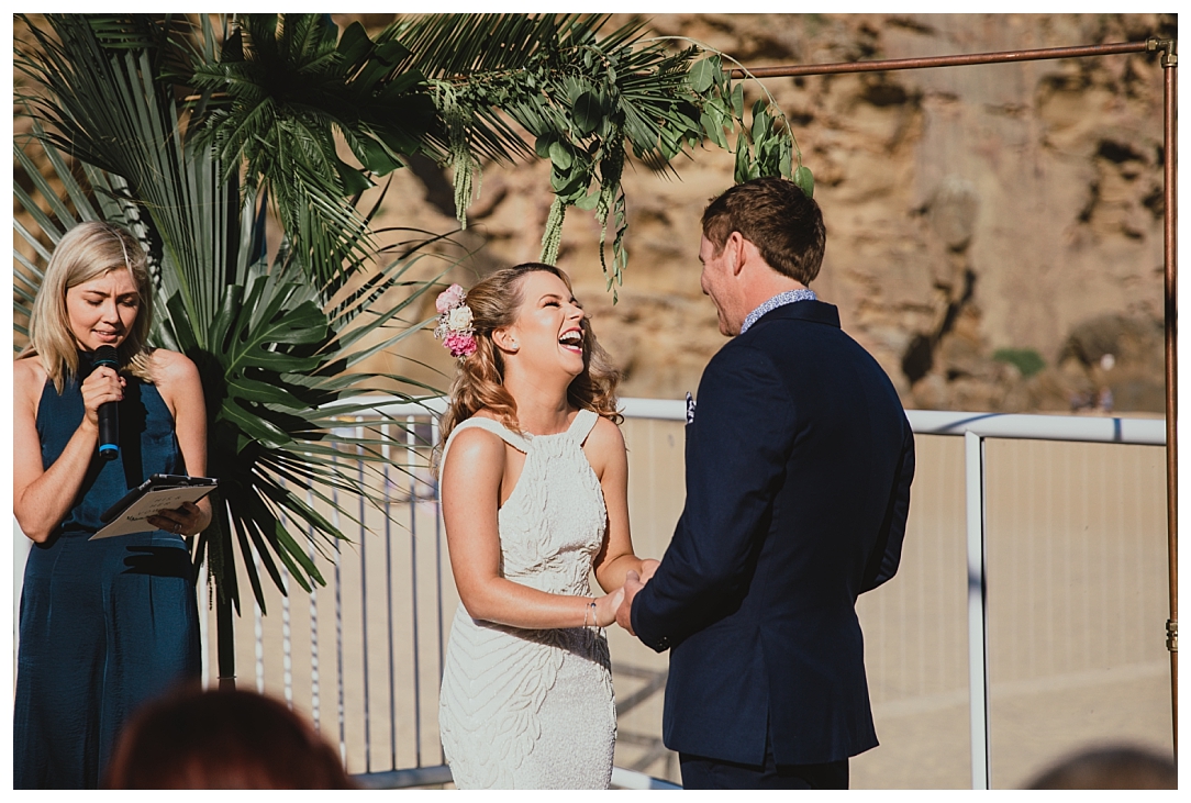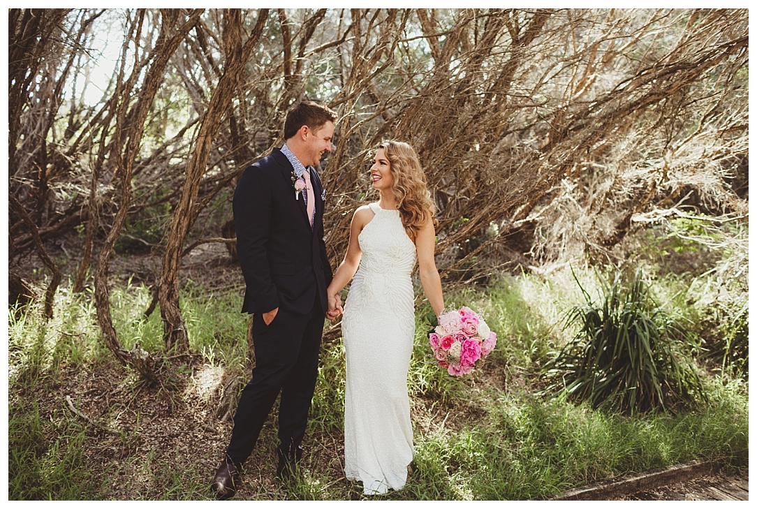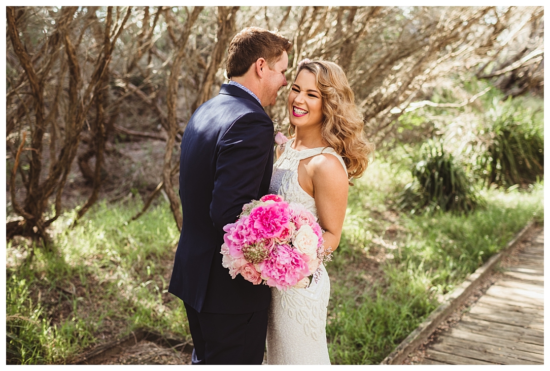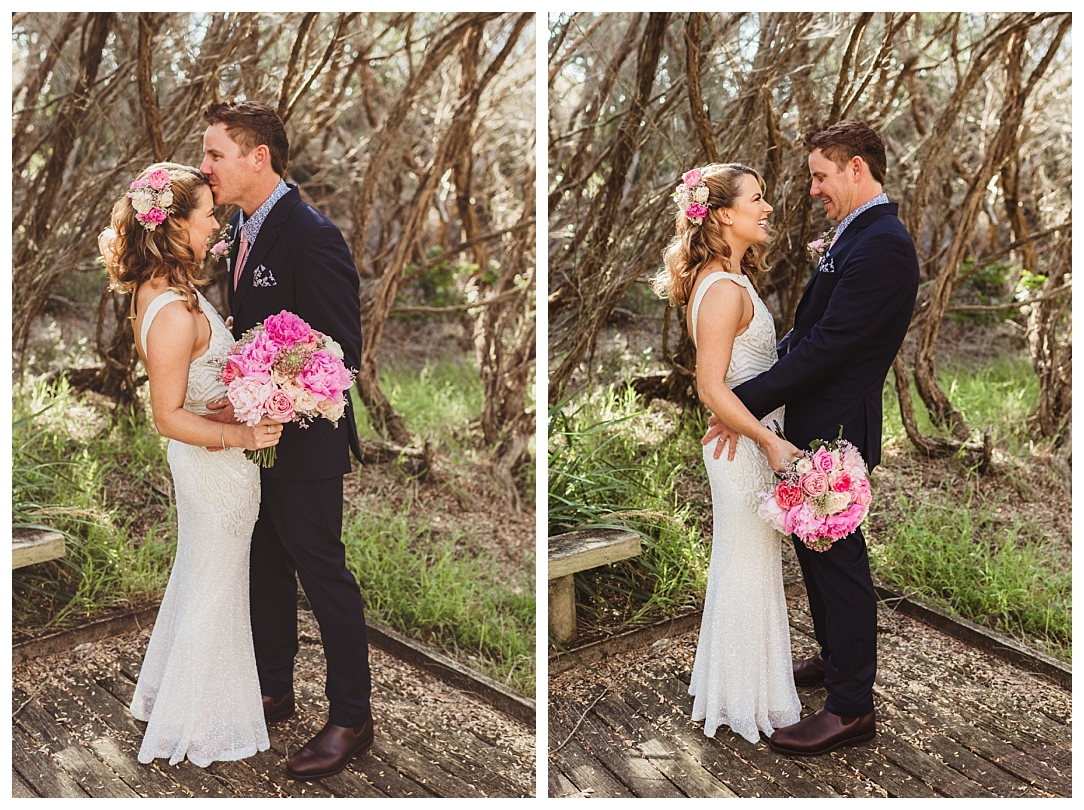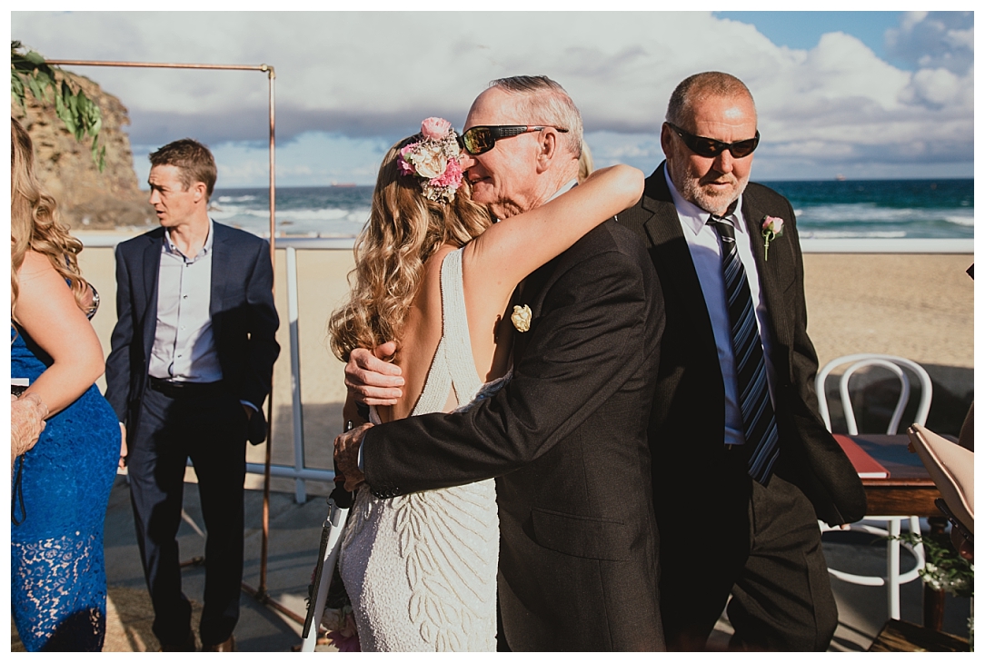 Tahnia & Matt were married on the 17th November at Redhead. These guys did things a little differently. We did a sneaky first look as well as their family photos before the ceremony so all there was left to do was to ‘get hitched’ and PAR-TAY! It was the sweetest first look. I love that Matt in so many of the photos just after the first look is holding Tahnia’s hand and standing back so he could check her out. Tahnia has the best smile that lights up every image and she looked drop dead gorgeous. They celebrated with a super cool bunch of people at Redhead Surf Club which was styled beautifully by Whimsical Fox events. Congratulations Tahnia & Matt, enjoy all of the smiles, love and laughter in the images below!